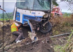 El accidente ocurrió después de que la unidad pasara por un bache, provocando que el conductor perdiera el control y saliera de la vía.